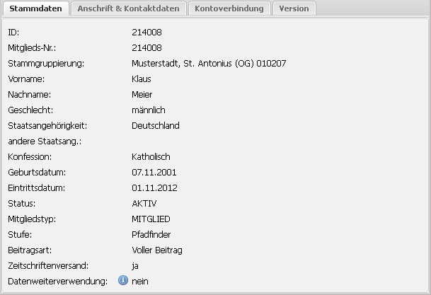 Mitgliedsnummer | Anzeige der automatisch erzeugten Mitgliedsnummer. | Kann nicht bearbeitet werden. |