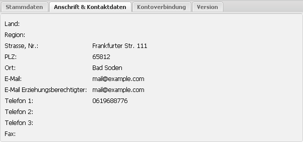 | E-Mail Erziehungsberechtiger | Gegebenenfalls Mailadresse der Eltern o.ä. | |
