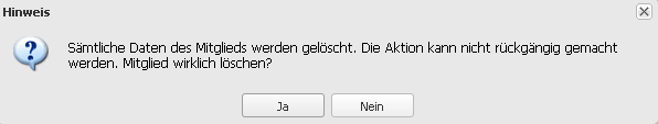 Soll das Mitglied nun doch noch endgültig mit allen Daten gelöscht werden, dann geschieht dies über "Mitglied löschen" (s.u.). Soll es wieder aktiviert werden, siehe Mitglied aktivieren.